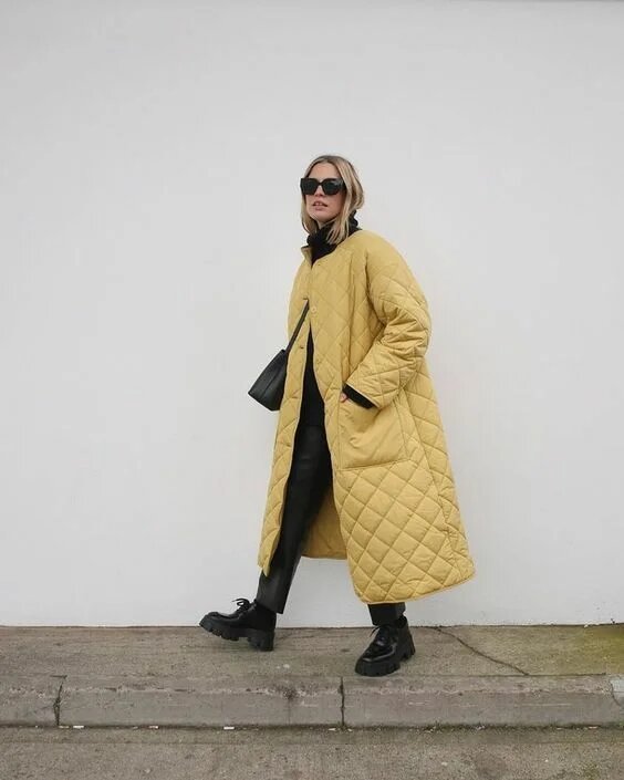 Розбавити однотонний сіро-чорний гардероб в осінньо-зимовому сезоні можна за допомогою стьобаного пальта молочно-жовтого відтінку – яскравий верхній одяг перетворить собою будь-який ваш стилістичний наряд.