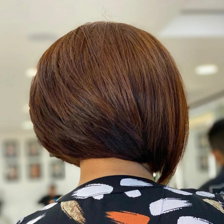 Класичний варіант поєднує ознаки двох стрижок – бобу (коротка потилична частина) і каре (строгий, рівний зріз). Пасма стрижуть паралельно голові, а на тих ділянках, де потрібен обсяг, з відтяжкою під кутом. Цей варіант можна доповнити чубчиком: косим, асиметричним або зі рваною текстурою.