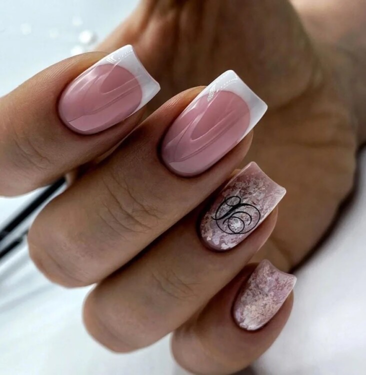 Поєднання французького дизайну і однотонного покриття дуже красиво виглядає разом. Такий манікюр чудово підходить для різних заходів.