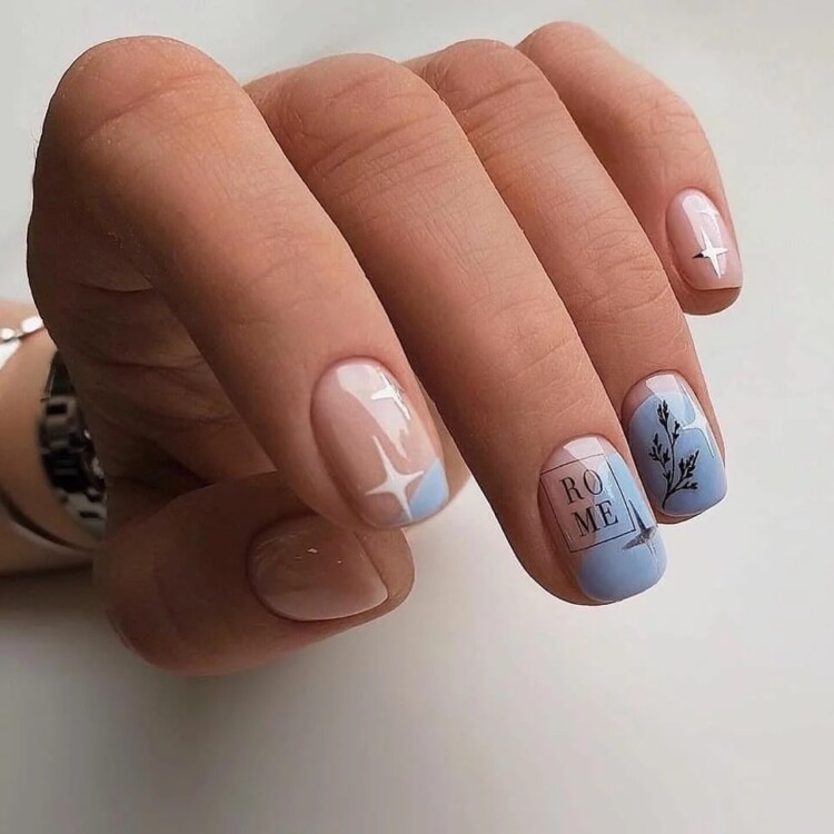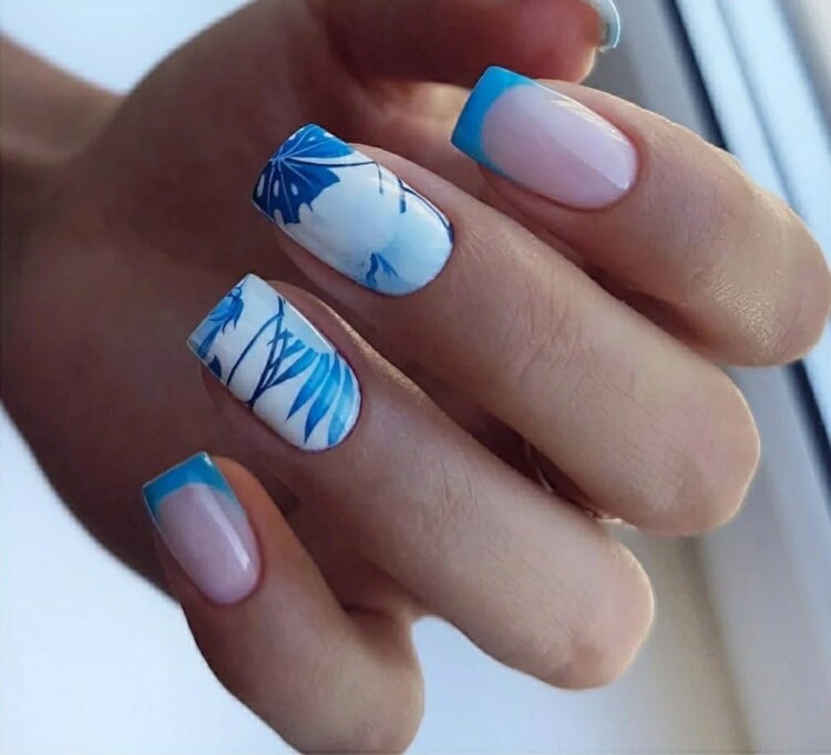 Для пляжного манікюру чудово підходить дизайн в блакитних і синіх тонах. Френч в даній палітрі виглядає стильно і супермодно.