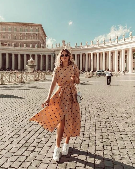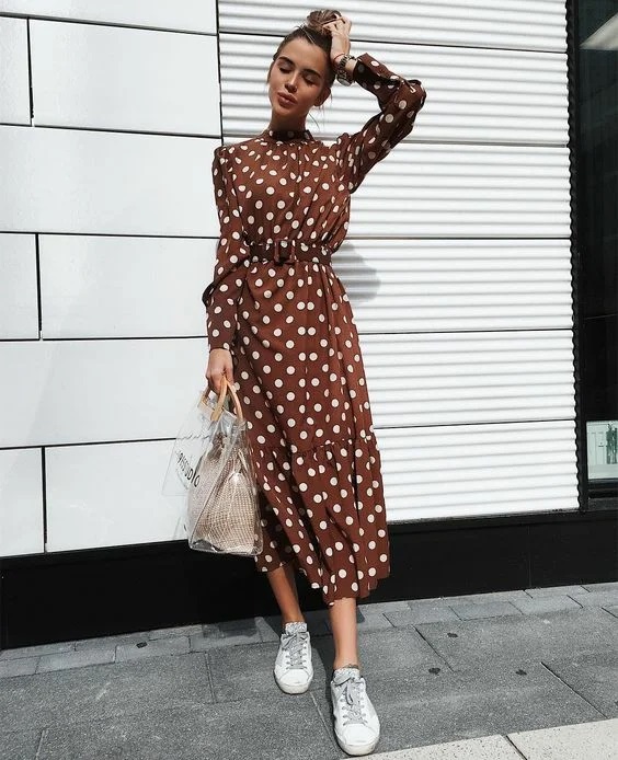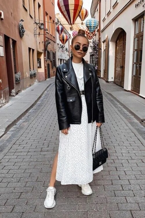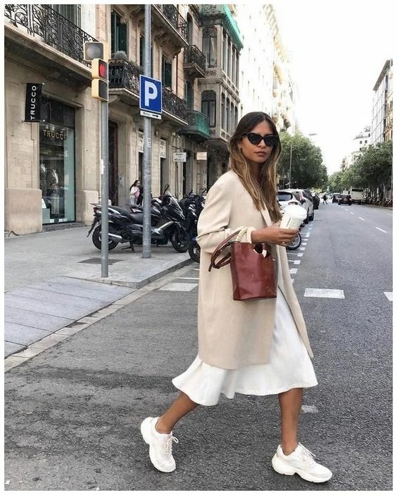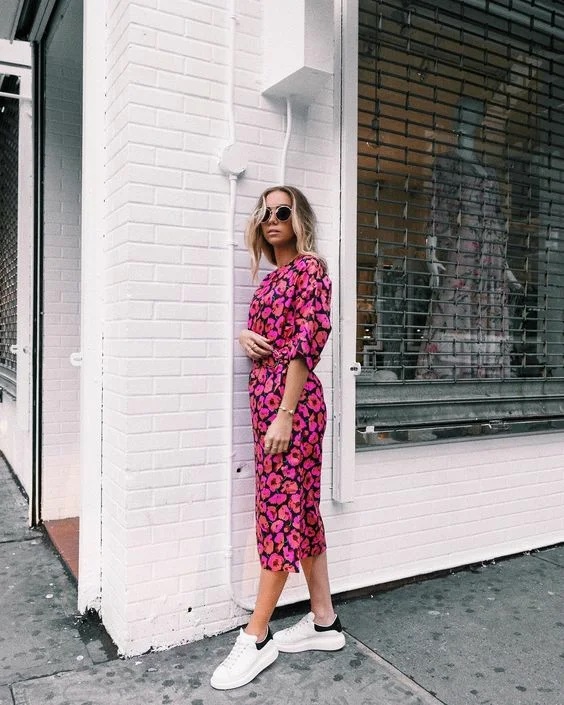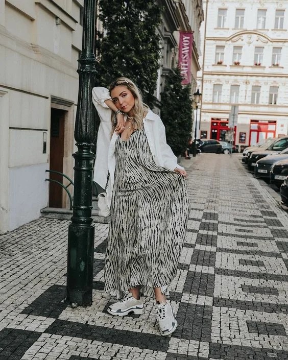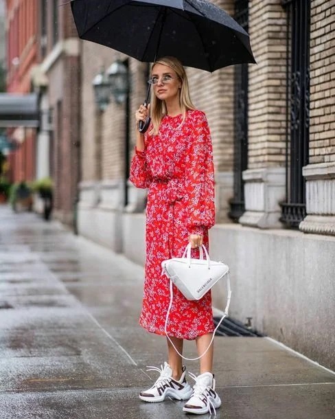 Як правильно поєднувати між собою жіночні сукні та максі спідниці з трендовими масивними кросівками або кедами? Нижче представлені наочні приклади того, як можна виглядати сучасно і жіночно в образі, що складається з сукні і кросівок.