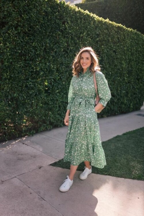 Жіночні і романтичні сукні в стилі Бохо прикрашені елегантним квітковим принтом можна носити не тільки з класичними туфлями і босоніжками, але також і з кросівками. Зухвале і нестандартне поєднання в одному образі кросівок з ніжними і жіночними моделями суконь надає неповторну перчинку сучасному аутфіту.
