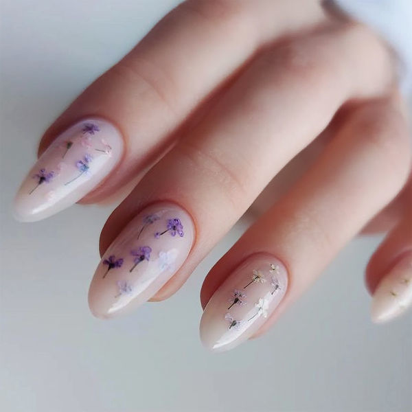 Гелі та бази зі справжніми засушеними квітами та дизайни із сухоцвітами, здається, тільки набирають обертів. Виглядає дуже по-дівочому і по-корейськи.