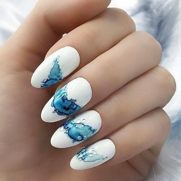 Так-так, у цьому манікюрі під камуфляжем ми розуміємо принт у стилі «мілітарі». Щоб привести його до весняного настрою, цятки можна робити різнокольоровими, особливо круто виглядають рожеві та червоні у поєднанні з білим. А щоб яскравих деталей не було надто багато, їх потрібно розмістити по периметру — а-ля окантувальний френч. Цей дизайн особливо гарний на довгих і дуже довгих нігтях, на коротких вийде хаотична каша.