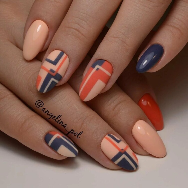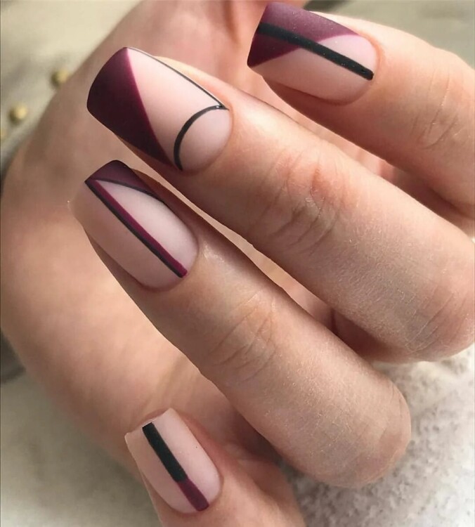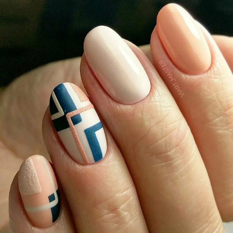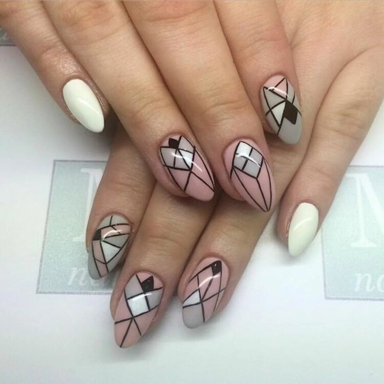 Навіть на коротких нігтях можна собі дозволити геометричні малюнки. Найкраще використовувати геометричні фігури невеликого розміру, щоб не перевантажувати образ. Красиво виглядає манікюр в строгих тонах, особливо в мінімалістичному стилі. Для коротких нігтів актуальні такі відтінки, як нюд і пастель. Вони прекрасно освіжають образ і надають манікюру унікальність.
