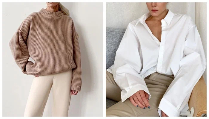 Наступну вибірку мінімалістичних аутфітів поєднує наявність штанів різного фасону. Гуру моди пропонують доповнювати стильні штани, при створенні мінімалістичних образів, об’ємними однотонними светрами, сорочками, а також оверсайз верхнім одягом.