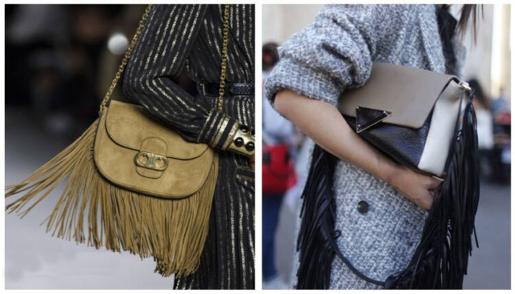 Сумки з бахромою навівають ковбойську тематику, їх доречно комбінувати з речами з деніму, а також іншими базовими однотонними нарядами в мінімалістичному стилі.