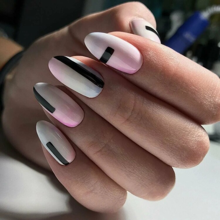 На тижнях високої моди погляду стилістів постали і інші новинки дизайну нігтів – місячний манікюр і широка смуга. Сучасний дизайн нігтів з широкою центральною смугою виконується в різноманітних варіаціях.