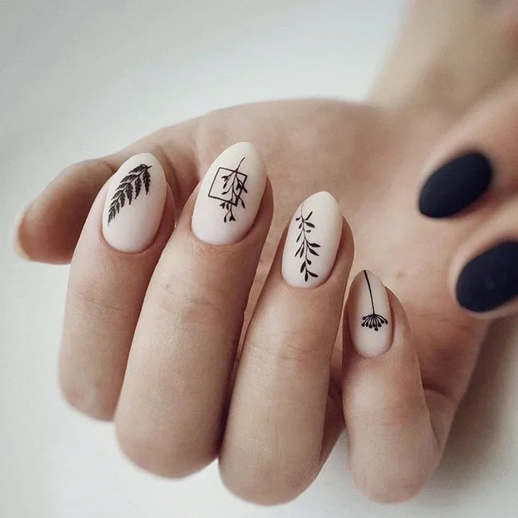 Осінній манікюр не означає, що ваші нігті повинні пістрявити яскравими фарбами. В тренді цієї осені також будуть стримані пастельні відтінки, наприклад бежевий. До того ж, бежевий є одним з найголовніших базових відтінків для манікюру. А якщо на бежевий нанести малюнки або візерунки в чорному кольорі, то такий манікюр точно заграє новими фарбами.