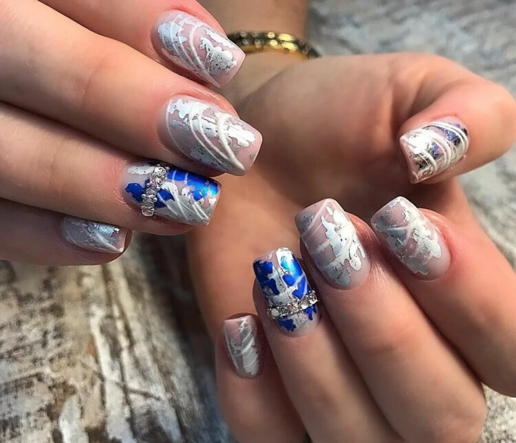 Якщо ви не знаєте, який нейл-арт вибрати на Новий рік 2021, придивіться до безпрограшного рішення – синього манікюру. Синій колір покриття, який має в своєму арсеналі безліч відтінків, підійде як молодим, так і жінкам у віці. Крім того, синій манікюр стане ідеальним рішенням для тих леді, які обрали для свого образу на Новий Рік синій костюм або плаття.