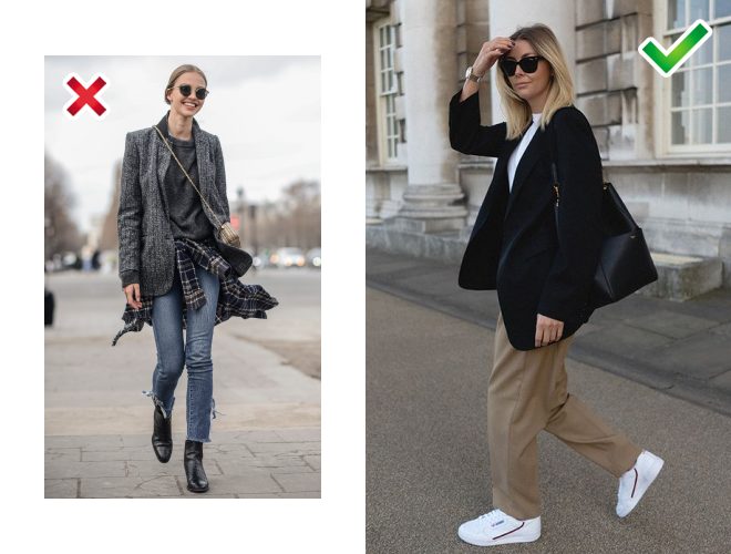 Під вузький жакет не варто одягати щільний пуловер. Краще заміксувати об’ємний жакет та тонку водолазку.