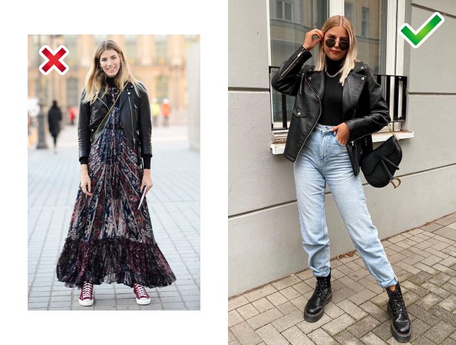 Укорочені моделі шкіряних курток у новому сезоні як ніколи є актуальними. Рекомендую носити кроп-косуху з джинсами з високою посадкою, а не з платтям до підлоги. Тоді образ виглядатиме динамічніше і сучасніше.