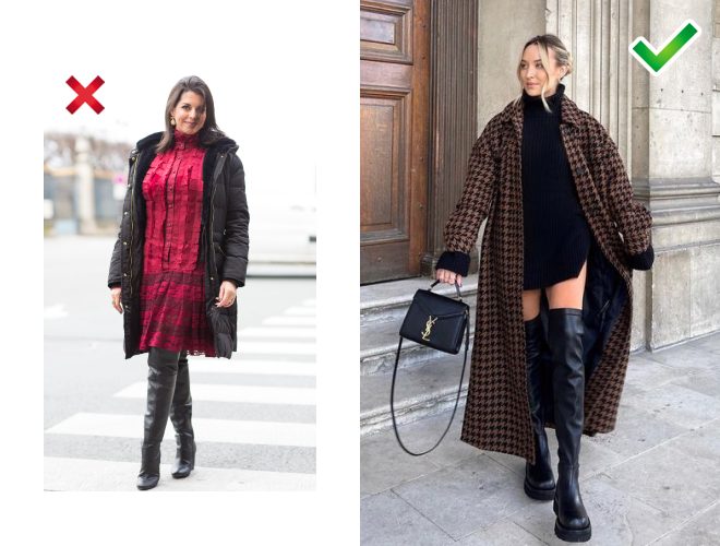 Розумію, як хочеться якнайшвидше одягтися легше. Але бавовняна сукня-сорочка виглядає безглуздо у поєднанні з пуховиком. Краще оберіть коротку трикотажну модель та вовняне пальто – це ідеальний дует на міжсезоння.