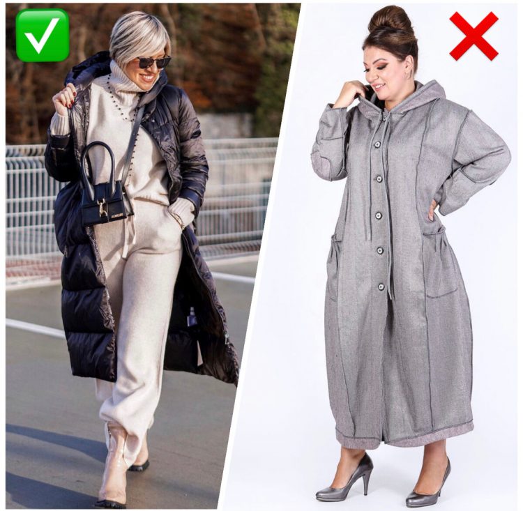 Пишним дамам краще уникати банального прямого силуету та дивних малюнків, вони дуже старять. Те саме стосується рукава 1/2 і 3/4 на куліску, він давно застарів і взагалі мало кому підходить.