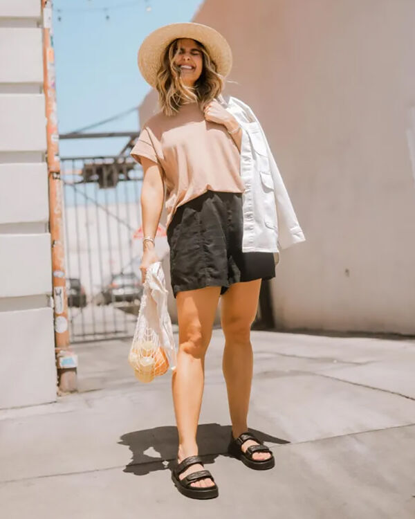 Якщо любите вільний крій, придивіться до розкльошених або прямі бермуди з бавовни. Вони тримають форму, добре сидять на талії і виглядають чудово навіть із діловою сорочкою.