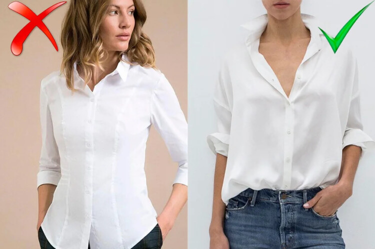 Сьогодні мода побудована на комфорті. А хіба вам зручно носити сорочку, яку постійно потрібно поправляти або яка десь вам підтискає і утворює складки навіть там, де їх немає. Замість неї прикупіть собі класичну білу сорочку вільного крою. Таку можна з легкістю відшукати навіть в чоловічому відділі.
