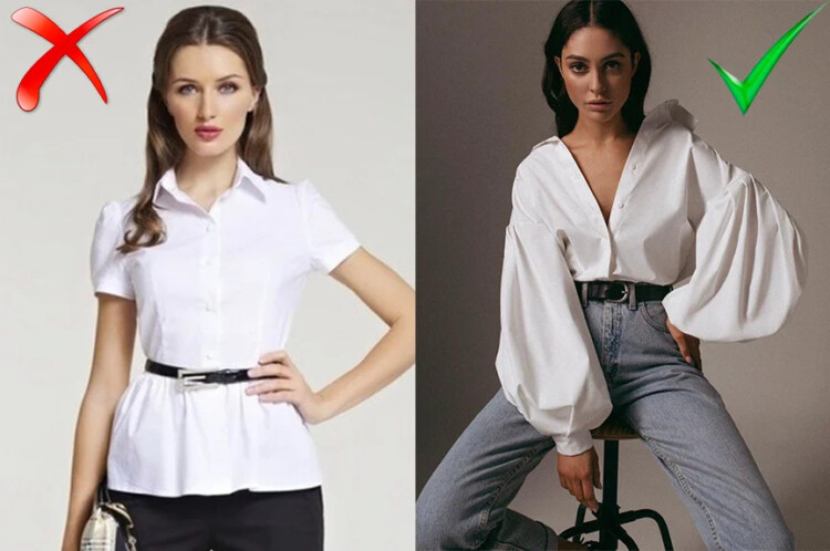 Цей застарілий предмет гардероба краще замінити на більш актуальний варіант, як представлено на малюнку. Тим більше, що у 2020 році пишні рукави є найспекотнішим трендом. І хто сказав, що для офісу це не може бути застосовано?