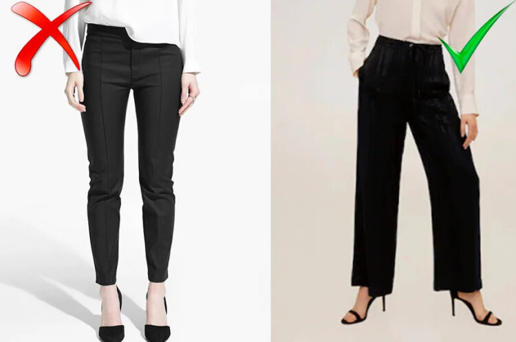 Скінні, на превеликий жаль, стають все менш актуальні. І якщо джинси ще якось можна обіграти в сучасній моді, то ось з класичними штанами все набагато складніше. Саме тому вони належать до явних антитрендів. Раджу придивитися до моделей кльош або до штанів палаццо.