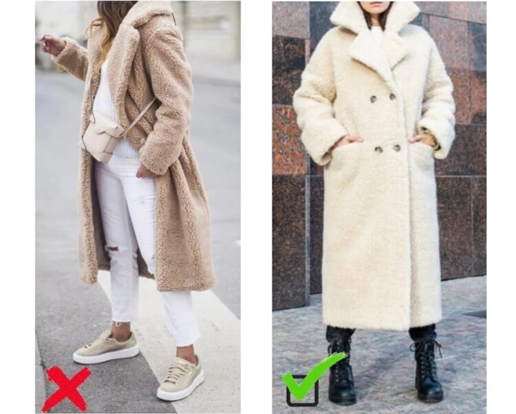 Ще залишилися питання по щиколотках. Тепла шуба і голі ноги в кедах – це якийсь стилістичний дисонанс. Якщо ви утеплюєте верх, то і низ повинен йому відповідати, голі ноги взимку не виглядають доречно, навіть якщо там капронові колготки або гольфи. Закривайте щиколотки носками, носіть взуття по сезону. Здоров’я важливіше трендових експериментів.