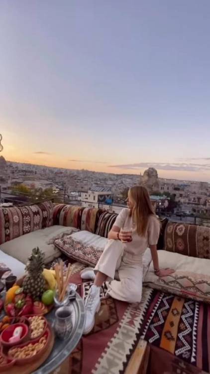 Знімалась співачка на тлі локації з килимами та пейзажами Каппадокії. У кадрі TAYANNA смакувала чай та відпочивала.