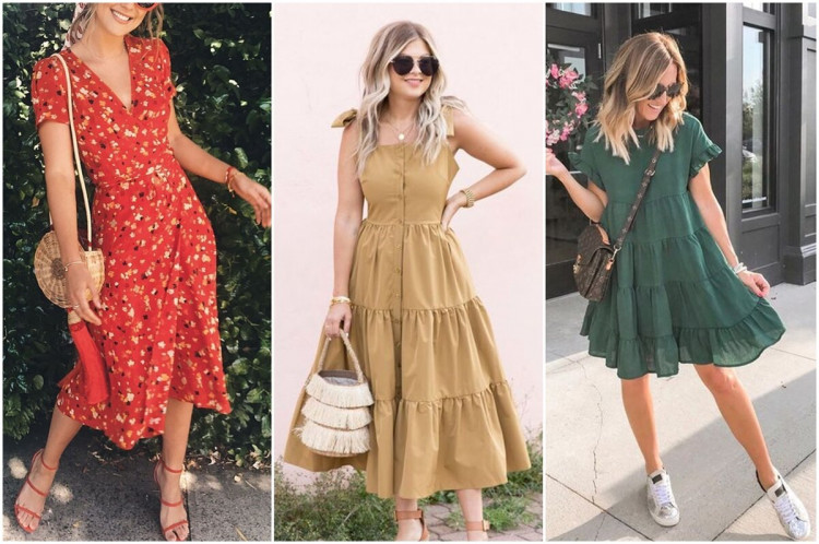 У відпустці, звичайно, хочеться виглядати нарядно і красиво. Тут на допомогу прийдуть легкі літні сукні та сарафани з бавовни або віскози. Можна взяти дві, щоб була різноманітність. Одну кольорову, іншу – однотонну. Одну довжини міді для більш вечірніх виходів, другу – міні, для повсякденного носіння. Дуже актуально виглядають сукні-парашути, ярусні сукні, сукні на запАх.