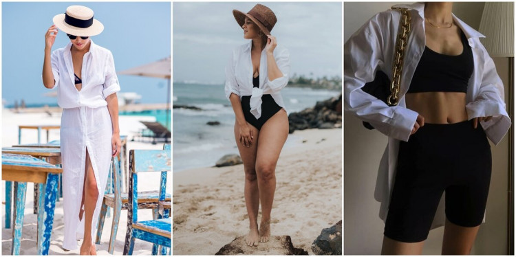 Універсальний предмет вашої відпускної капсули – біла сорочка. Її можна носити і як самостійний виріб, і як верхній шар: поверх топів на прогулянці або поверх купальника на пляжі, щоб захистити плечі і руки від південного палючого сонця. Та ж історія і з сукнею-сорочкою. Носимо і самостійно, і як накидку.