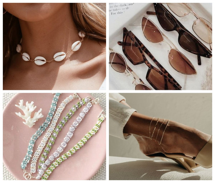Обов’язково доповніть гардероб актуальними аксесуарами. Цього літа варто придивитися до прикрас з намистин і бісеру – мабуть, це головний тренд прикрас. Ще один тренд – браслети для щиколотки. Все ще залишаються актуальними для відпустки прикраси з черепашками або їх імітацією. І, звичайно, не забудьте сонцезахисні окуляри актуальної форми.