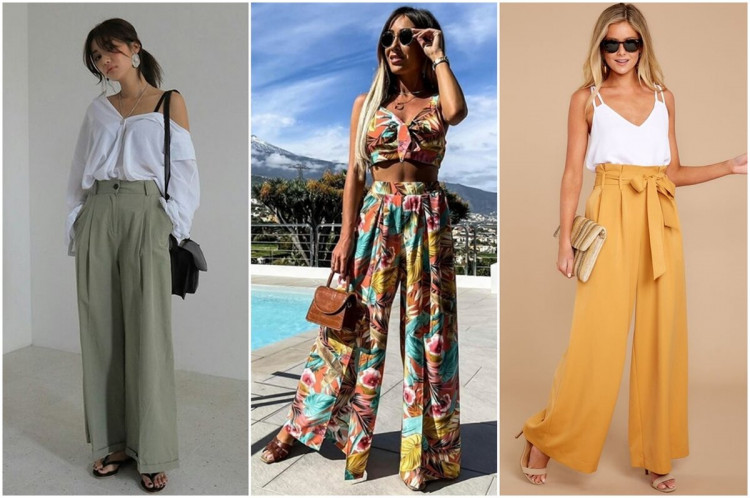 З ошатних низів візьміть актуальні широкі брюки-палаццо в підлогу: в них не жарко, тому що в вільних штанин відмінно циркулює повітря, а виглядають вони стильно і не банально. Поєднуйте їх з вищезгаданими кроп-топами і базовими футболками.