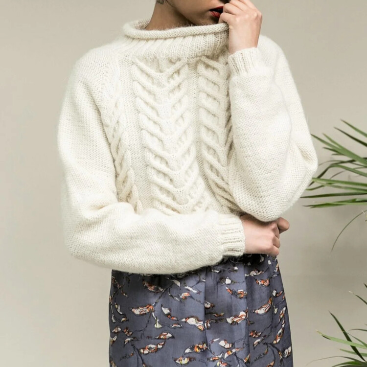 В даному образі всі речі вільного крою, а взуття масивне. Образ вийшов розслабленим і дуже стильним. Светр є акцентом образу через свою текстури.