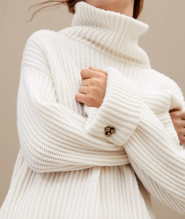 Такий светр також повинен бути в гардеробі модниць. Він виглядає більш стильно, ніж водолазки. При цьому в ньому буде набагато тепліше.
