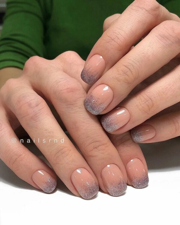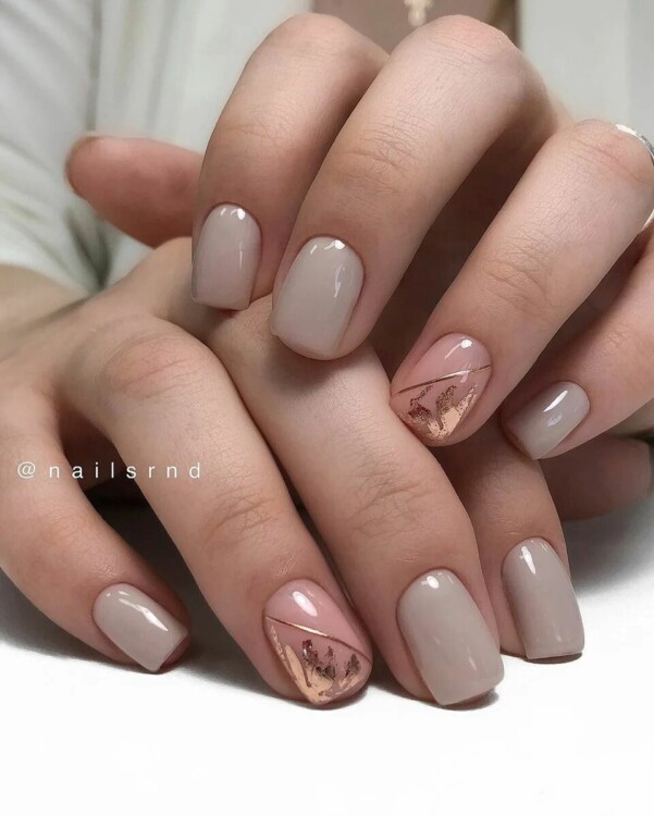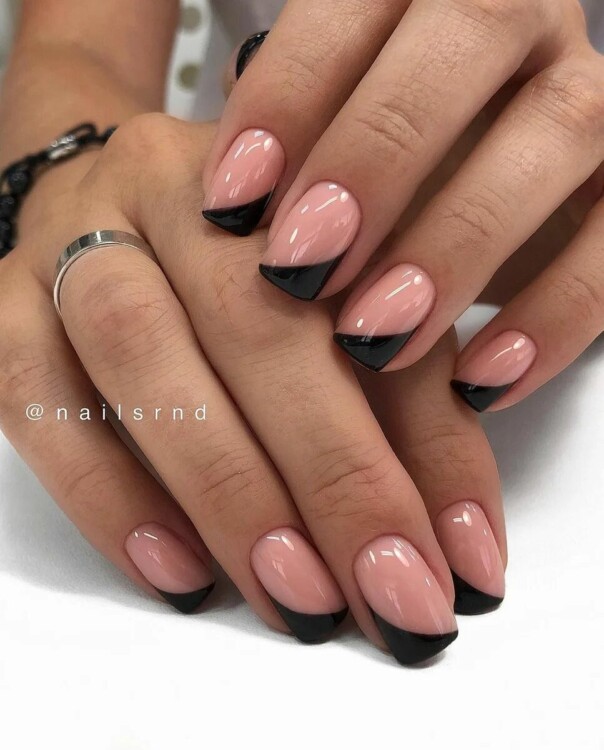 Стильно виглядає двоколірний варіант, з базою в нюдових відтінках.