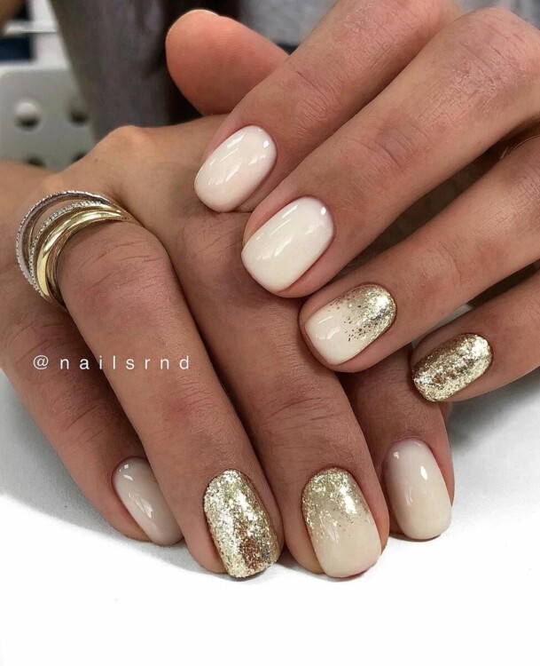 Класичний дизайн для будь-якого віку і ситуацій – білий, золотий або пастельного кольору «посмішка». Яскравий френч тут не підійде – він візуально укорочує ваші нігтики.