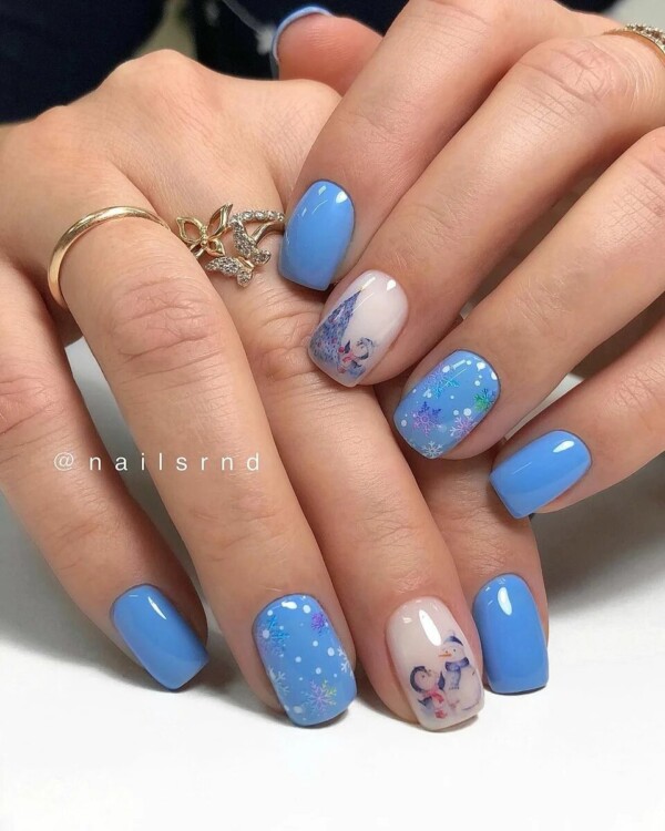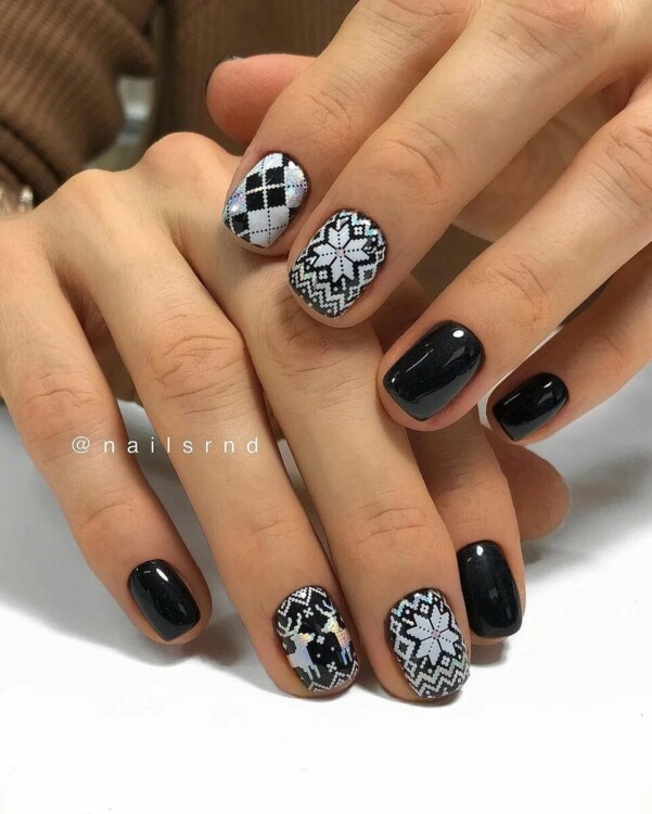 Зимовий манікюр в цьому варіанті відрізняється різноманітним дизайном і вітається навіть в офіційному дрес-коді не тільки в непомітних тонах, але і з оригінальним малюнком або декором.