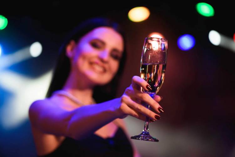 Мабуть, цей новорічний дизайн – найкращий для фоток з келихом шампанського в руці. Бульбашки в келиху гратимуть, а нігті — грайливо блищатимуть.