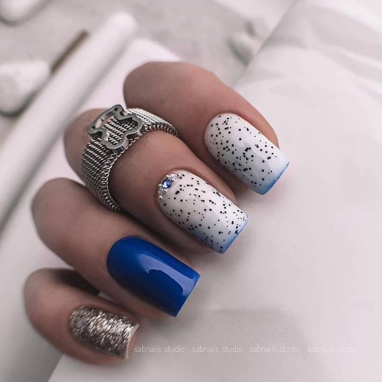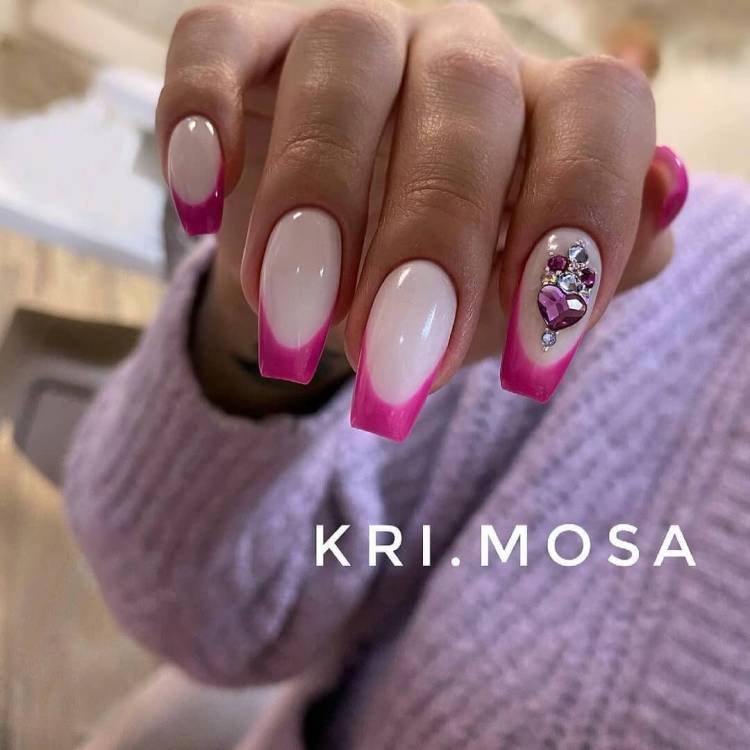 Як би не лаяли об’ємні стрази, модниці все одно дуже люблять яскраві камінці на своїх нігтях. Цієї весни особливо в тренді величезні камені, які займають більшу частину нігтьової пластини. Для красивого манікюру варто вибрати нюдовий або білий фон, а на одному або двох пальчиках зробити акцент з блискучого елемента нейл-арту. В тренді класичний манікюр зі стразами, геометрія з камінчиками і абстракція з акцентними деталями.
