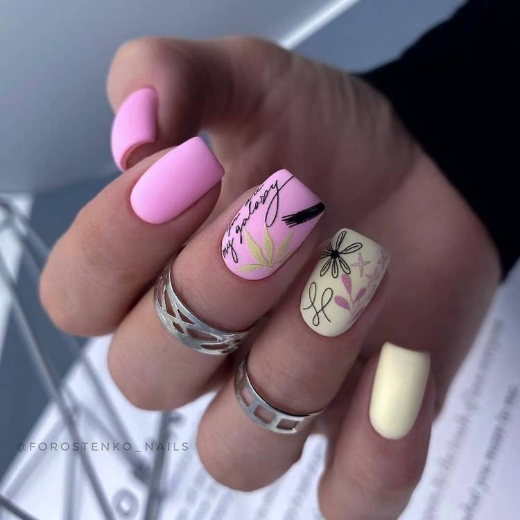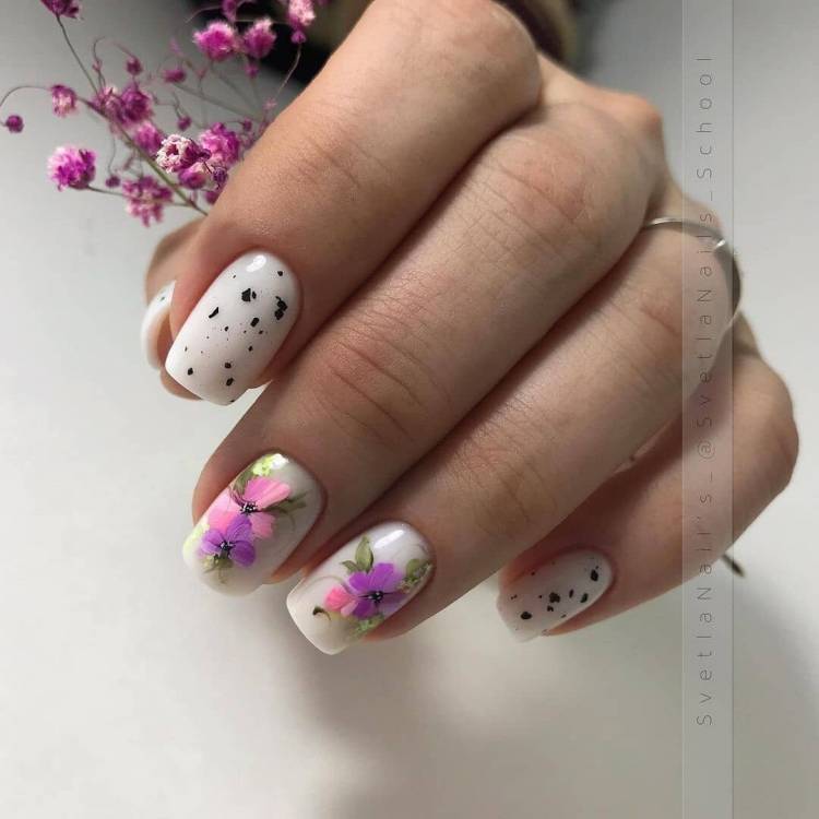 Манікюр з різними флористичними вставками – це класика, яка вже давно зайняла своє місце в світі нейл-арту. Але цієї весни в моді більш оригінальні квіточки і гілочки. Майстри перетворюють красиві бутони в абстракцію, яка виглядає особливо шикарно в яскравих тонах. Ще одна порада від майстрів – прикрасьте привабливий флористичний дизайн матовим покриттям.