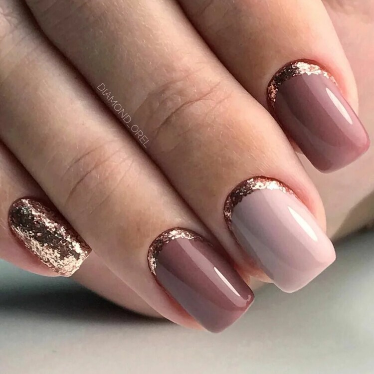 Теплі відтінки можна комбінувати в одному манікюрі. Для кожного нігтика виділити свій окремий колір. Образ вийде чудовим. Навіть елементи декору не потрібні. Можна використовувати втірку або фольгу. Красиво виглядає пудра. Особливо якщо за допомогою неї виконати візерунки на глянсовому покритті.