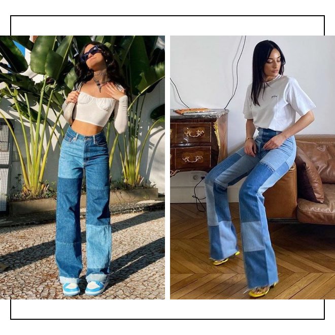 Гостромодний варіант для леді, яка звикла бути героїнею стрітстайл-хроніки. Джинси в стилі печворк пошиті з деніму різних відтінків. Щоб бути наймоднішою і почуватися комфортно в спеку, вибираємо модель розміру оверсайз, що не стискає рухів.