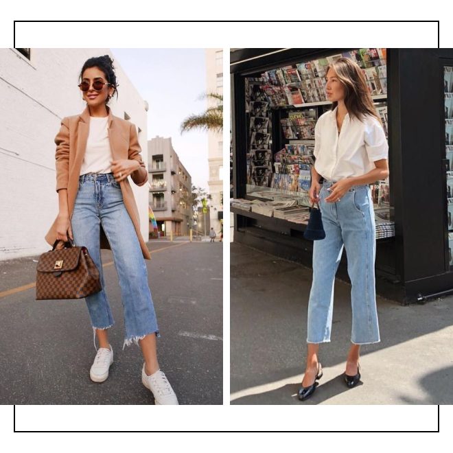 Довжина до кісточок не втрачає актуальності і дозволяє ніжкам дихати вільніше. Вибираємо напівприлеглий крій, моделі мамс, кльош – все це впишеться у трендовий літній образ. Особливо витончено укорочені джинси виглядають з «голими» босоніжками або човниками.
