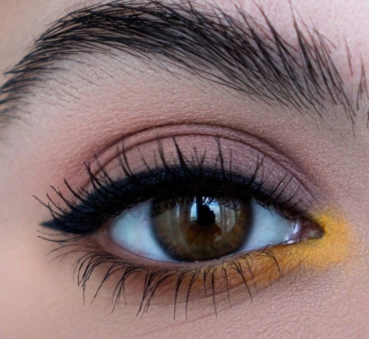 Це припаде до смаку не всім, але такий макіяж виглядає дуже ефектно. Зірки наносять жовті і червоні тіні на внутрішній куточок, але Вам це робити не потрібно. Під професійними камерами і з крутої ретушшю їх макіяж виглядає класним. Але в житті це виглядає як хворі очі.