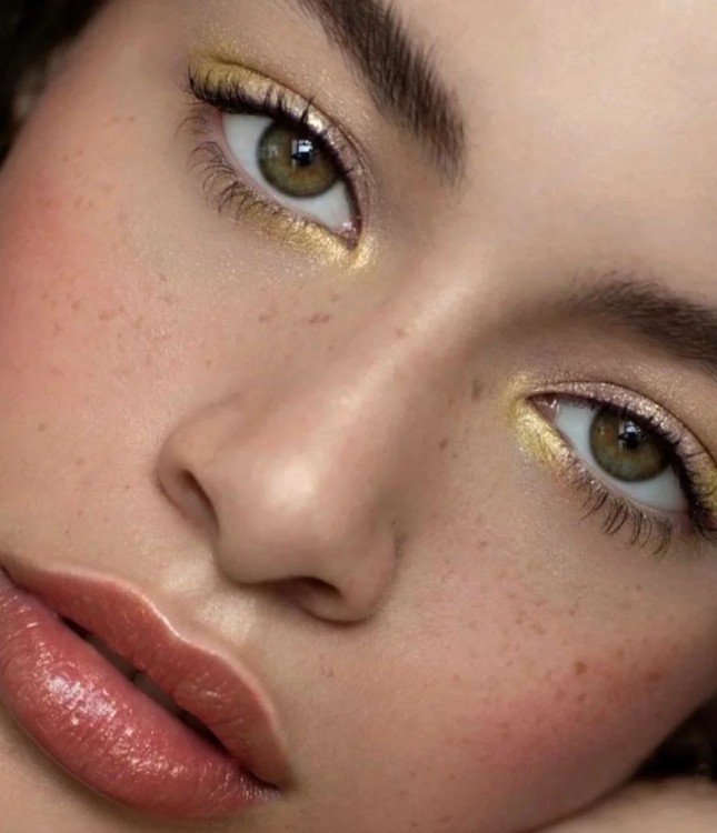 Влітку не сильно хочеться “запарюватися” з макіяжем. Хочеться зробити щось дуже швидко, але при цьому виглядати красиво. У цьому нам допоможе наступний тренд – золото в макіяжі. Золота підводка, помада і рум’яна сподобаються і підуть не всім, а ось золоті тіні – прекрасна ідея.