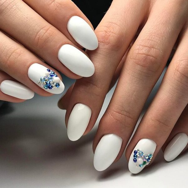 Декоративні елементи на нігтях мають бути зведені до мінімуму. Варто відмовитися від великої кількості блискіток або страз. Максимум – один два нігтики.