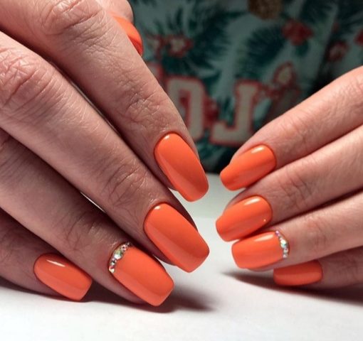 Для сміливих і впевнених жінок стилісти рекомендують придивитися до більш креативного оформлення нігтів. Можна вибрати ніжно-м’ятний або червоно-жовтогарячий відтінки.