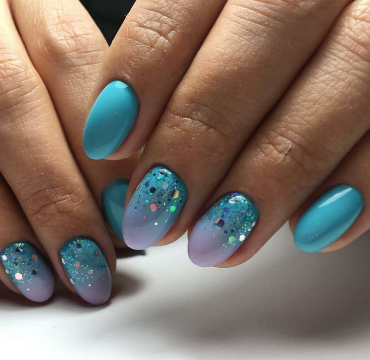 Градієнт. Він може бути виконаний у різних техніках. Стилісти рекомендують придивитися до абстрактних малюнків та лінійного градієнта.