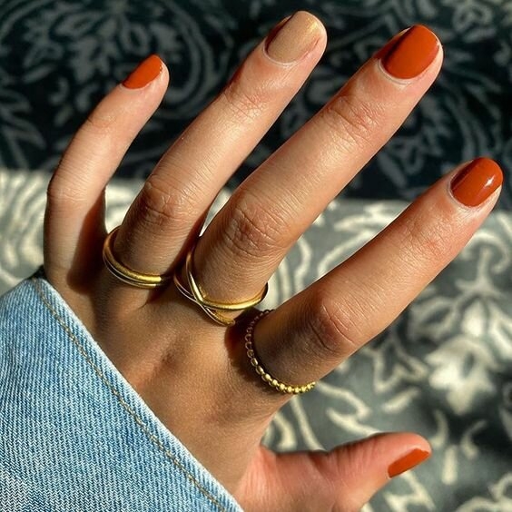Навесні хочеться більше яскравих фарб. Помаранчевий або жовтий манікюр створить святковий настрій. Доповнювати такий манікюр дизайном не варто, він і так виглядає яскраво і привертає до себе увагу.