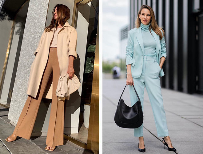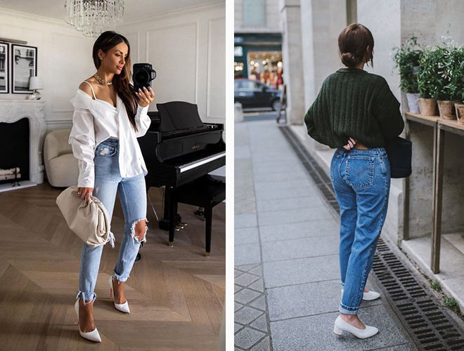 Носіть широкі штани та джинси з туфлями на підборах або платформі – цей прийом зробить вас вищими і стрункішими, витягне силует. Образ виглядатиме жіночно та елегантно з будь-яким верхом!