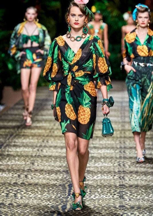 З тропічним принтом можна створювати абсолютно різні образи. Ним можна розбавляти образ, робити акценти або взагалі створити тропічний тотал лук. До речі, дизайнери пророкують, що даний принт залишиться актуальним і восени.