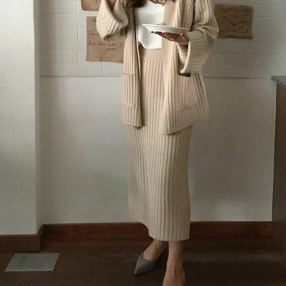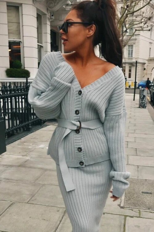Підперезаний кардиган + міді Силуетна трикотажна спідниця – ідеальне поєднання речей, яке стане в нагоді кожній жінці в цьому сезоні для створення повсякденних, а також святкових образів.