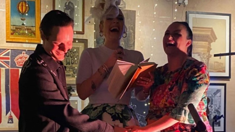 Цікаво, що на вечірку з нагоди одруження співачка прийшла в білому топі (в поєднанні з пишною принтованою спідницею) і з імпровізованим капелюшком з фатою в волоссі. У той час як сама наречена переодяглася у квіткове плаття.