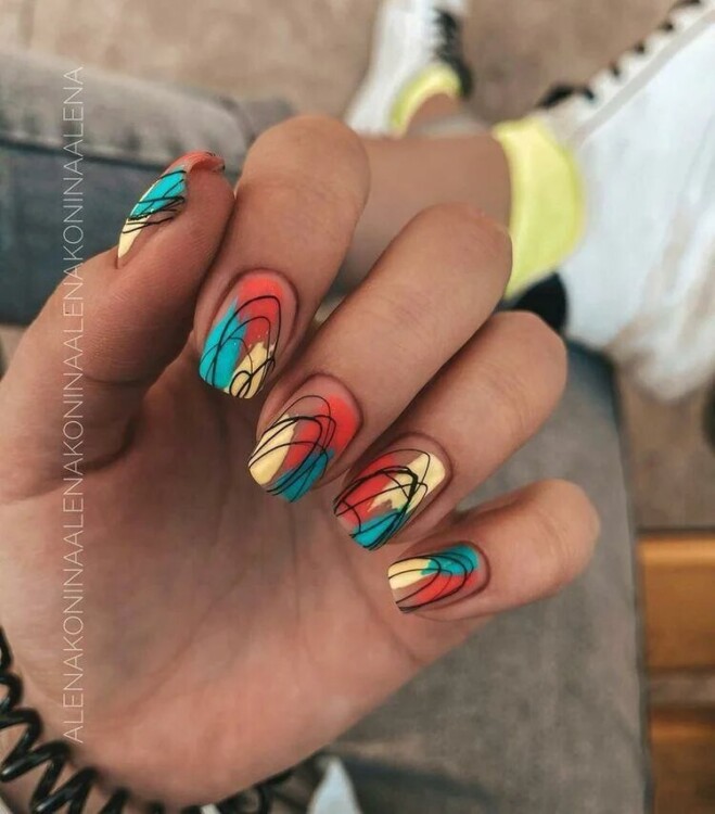 Але найголовнішим трендом осені 2020 все-таки залишається абстракція, тонкі лінії в поєднанні з класичними осінніми відтінками – з зеленим, жовтим, помаранчевим. Манікюр, який виконаний різними техніками і відтінками, завжди привертає увагу і піднімає настрій. А матовий топ додасть манікюру бархатистість, загадковість … Подивіться самі!